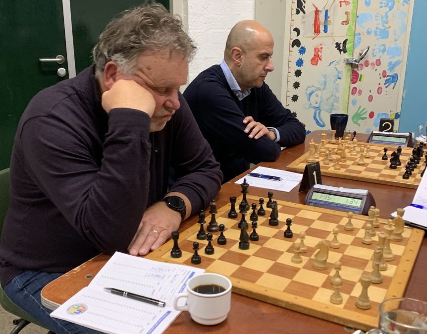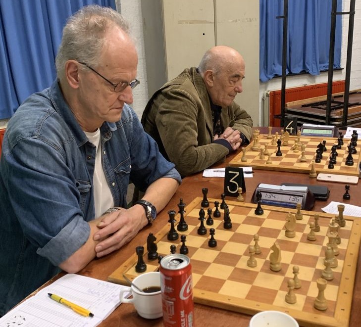 2e ronde Kees speelde met zwart aan bord 1 een gelijk opgaande partij. Ook na afruil van de diverse stukken bleef de stelling in evenwicht. Een snelle remise als resultaat.Yassin speelde aan bord 4. De beslissing in deze partij viel nadat Yassin met wit met zijn dame en loper pion h7 aanviel en veroverde. Nadat ook de andere loper bij de aanval werd betrokken, was de strijd beslist. Het slotakkoord kwam van de 2 torens, die middels schaak de zwarte koning van de dame verwijderde waardoor deze verloren ging. -> 1½ - ½