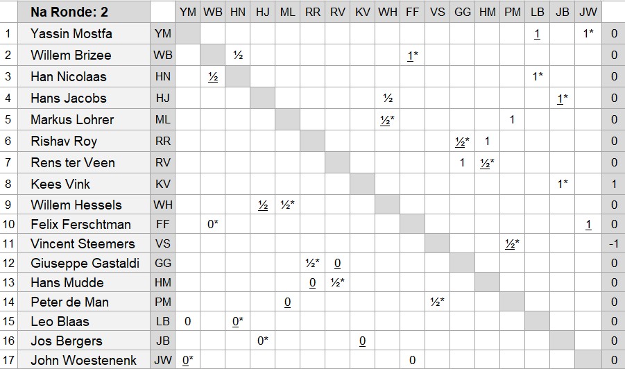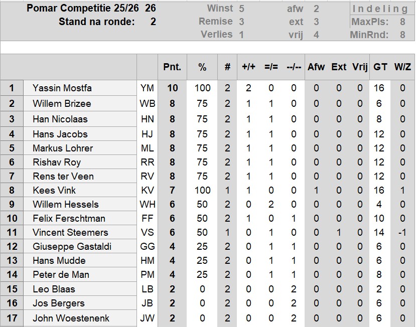 Stand en matrix na de 2e ronde van de voorjaarscompetitie op 03 maart 2026